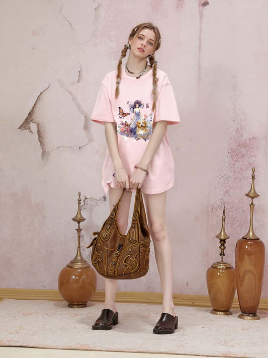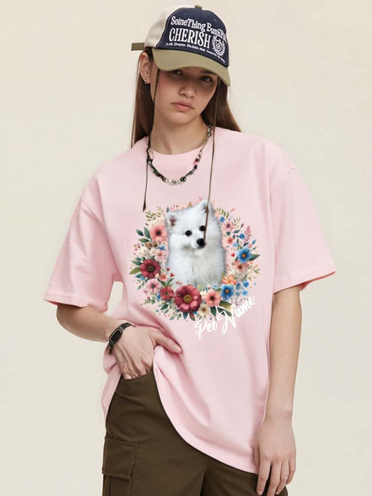 Custom Whimsical Floral & Butterfly Pet T-Shirt Cotton Tee