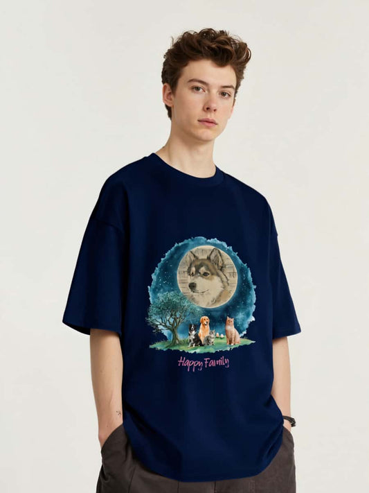 Custom Moon Night Pet T-Shirt Cotton Tee