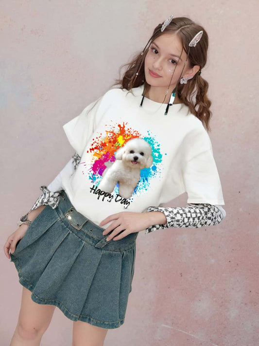 Custom Cotton Cat/Dog Mother's Day Portrait T-Shirt